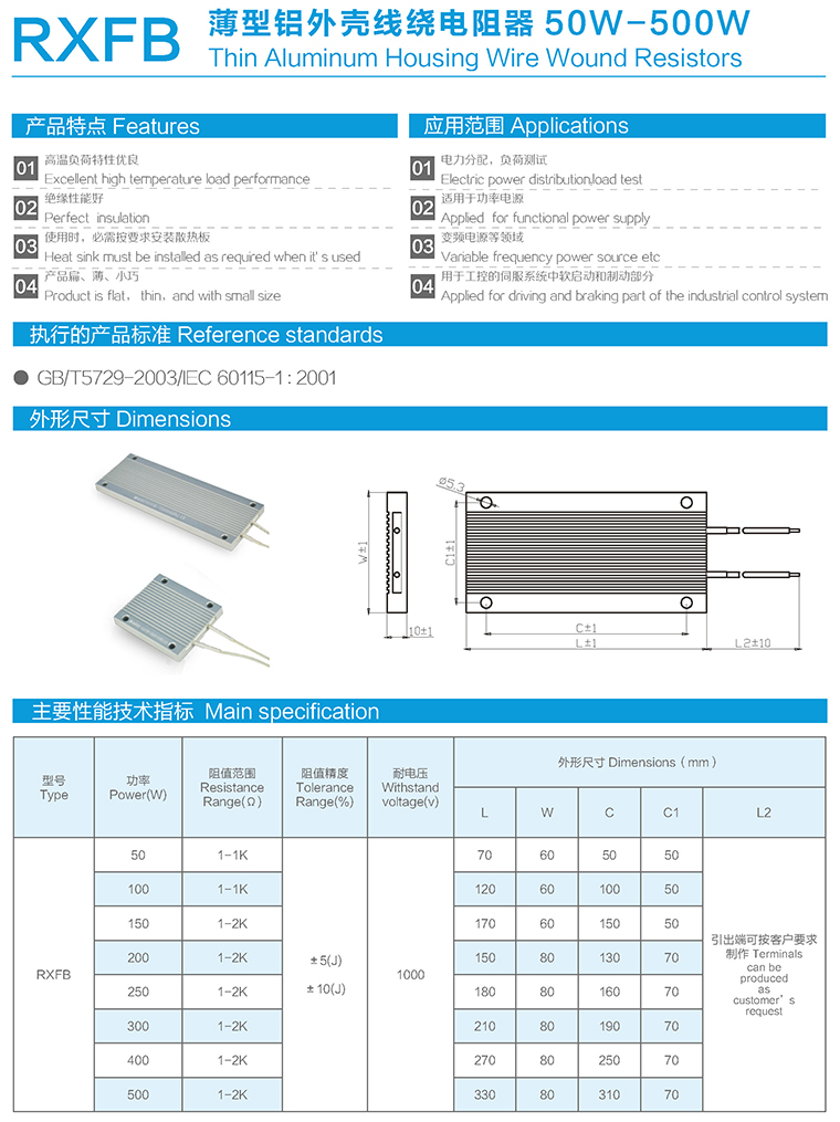 RXFB薄型铝外壳线绕电阻器